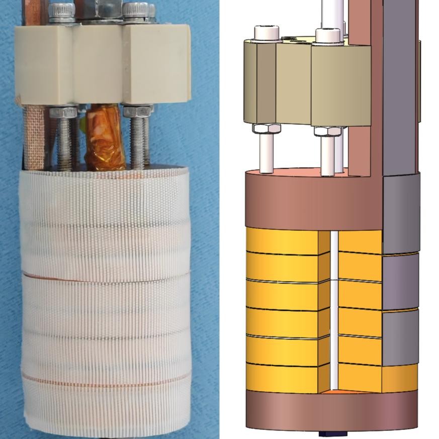 近日,中国科学院合肥物质院强磁场科学中心匡光力/蒋冬辉课题组在高场超导磁体技术领域取得重要进展。研究团队利用国产稀土钡铜氧(REBa2Cu3O7-x)高温超导带材绕制的“口袋”型内插高温超导线圈,在液氦零背景场下产生28.20 T磁场,并在稳态强磁场实验装置WM5水冷磁体34.5 T的背景场下产生10.36 T磁场,总体磁场达44.86 T。